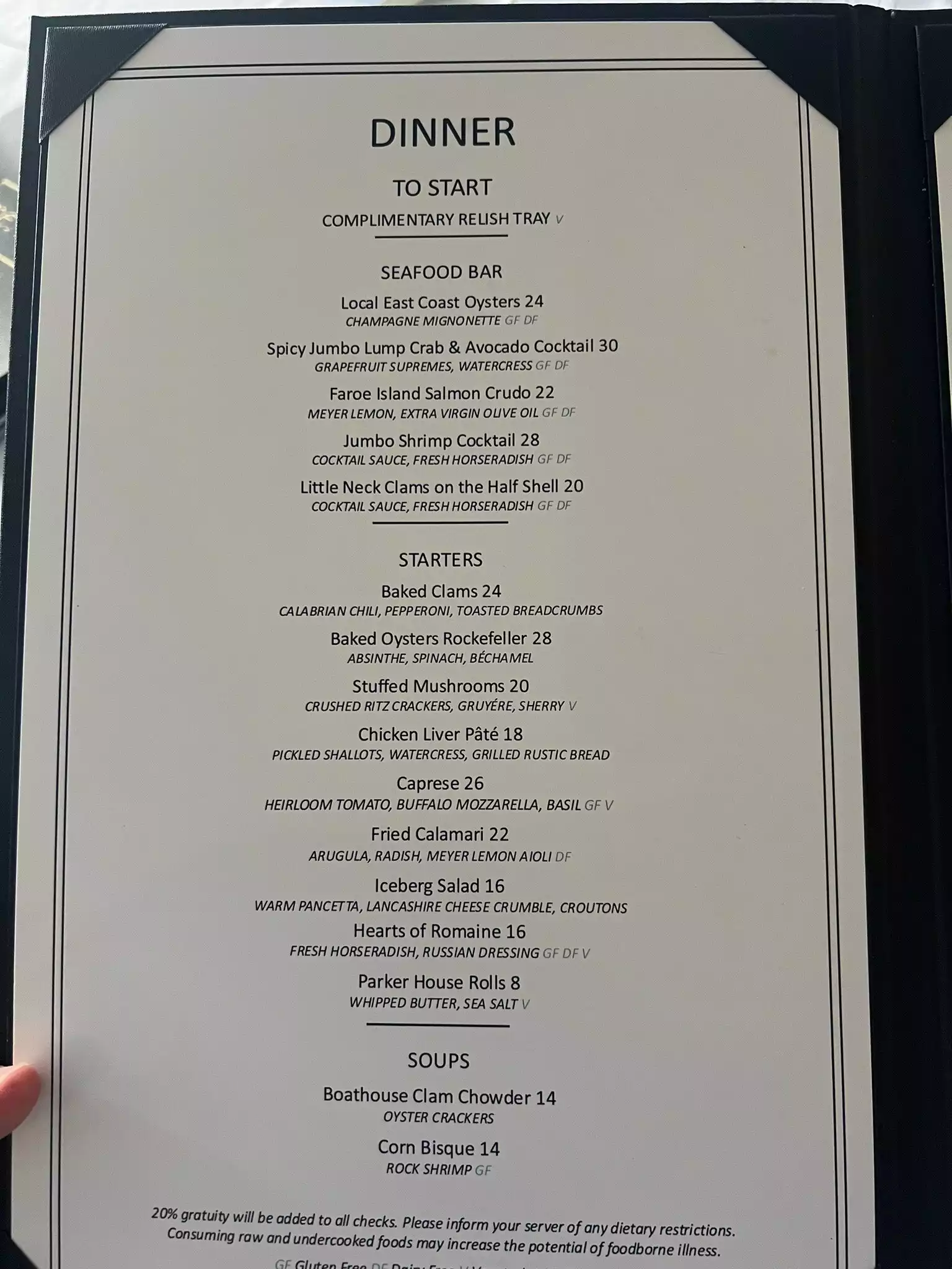 Wonderful experience. Wife made reservations 2 months ahead & we were seated immediately along the lake. Or waiter, Clay, was on the spot, made several recommendations which were on target - Perhaps the best crab cakes we have ever experienced and the fried chicken was fabulous. My Italian seafood pasta was very good, not great. Service and ambiance were outstanding.