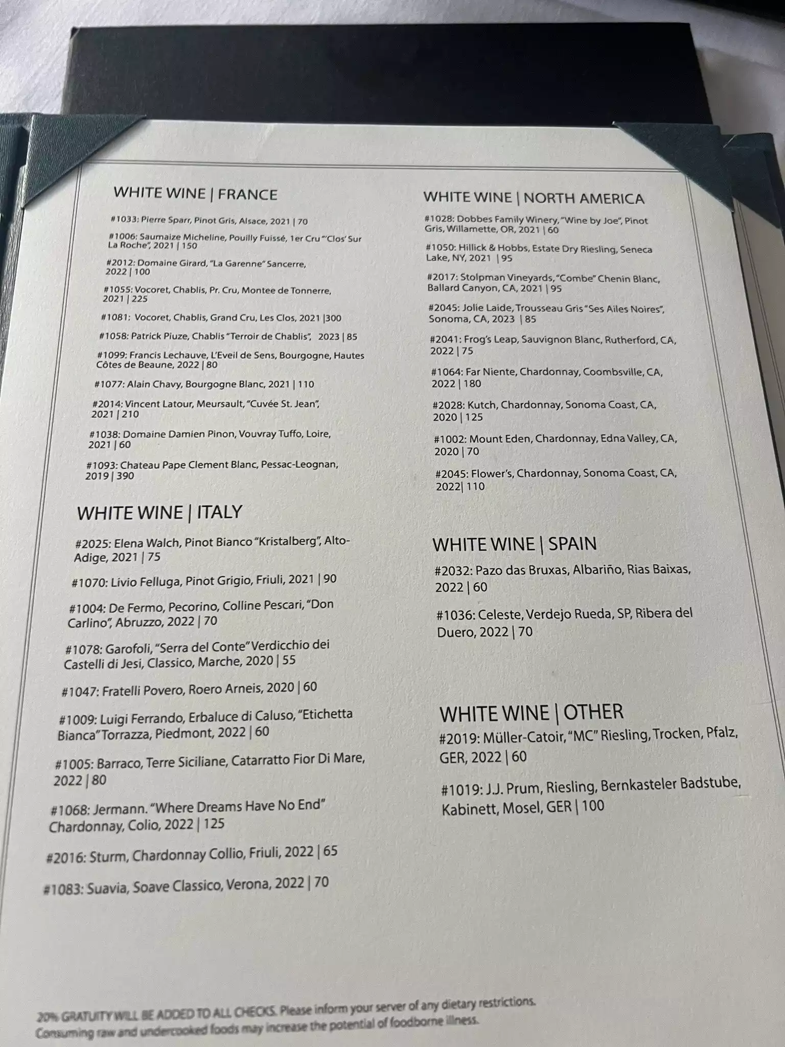 Italian menu which did not have a lot in it.The assortment of bread was excellent but would have preferred if they were warmed.