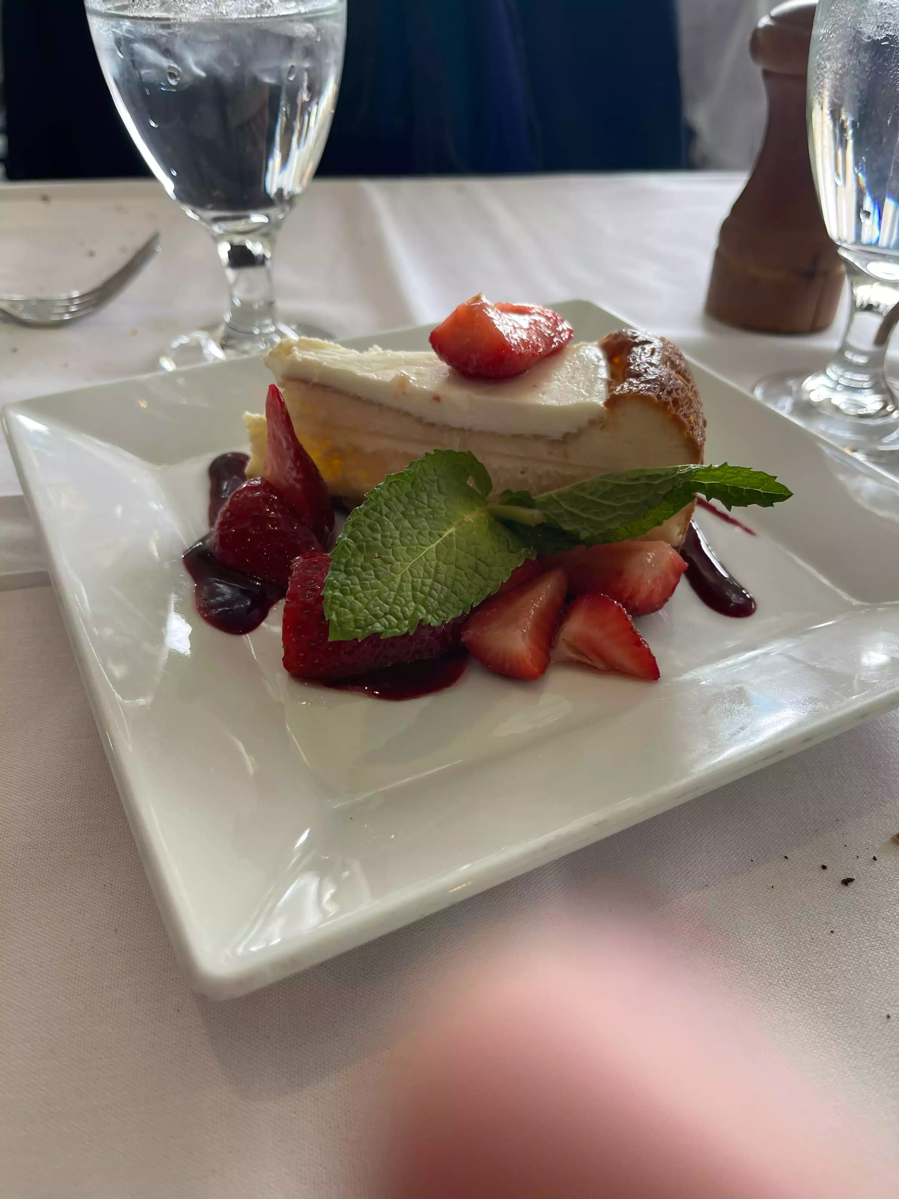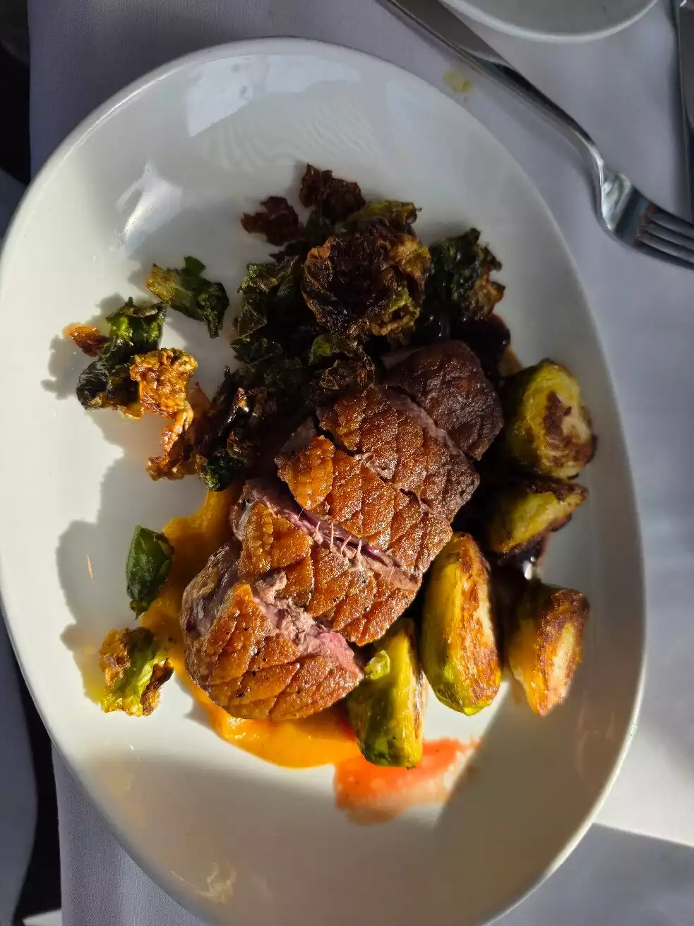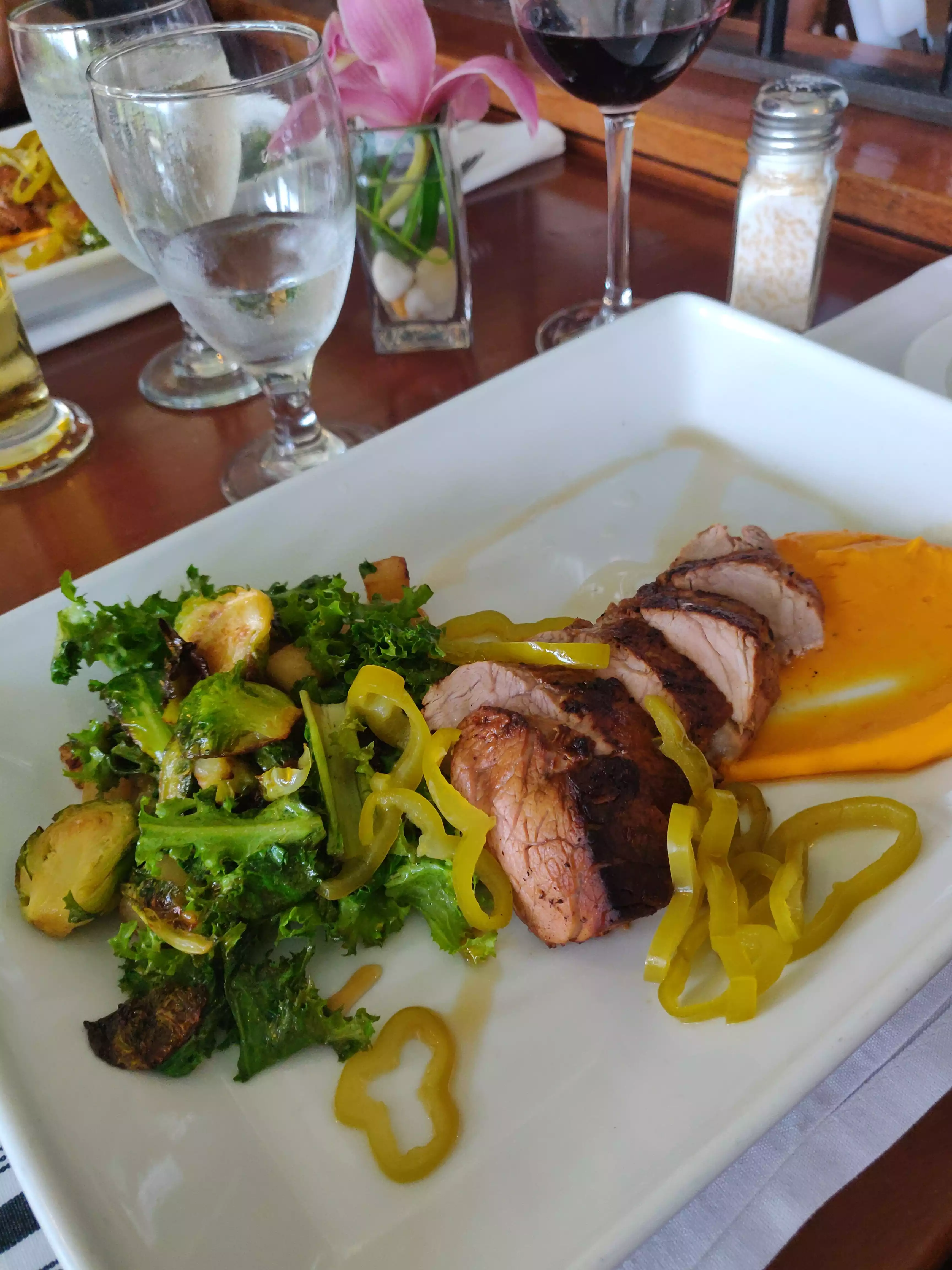 This was a very nice experience with a great View good food and good service. I had the roast to duck which was very good my wife had the lump crab cake and my son had a the roasted chicken and it was delicious