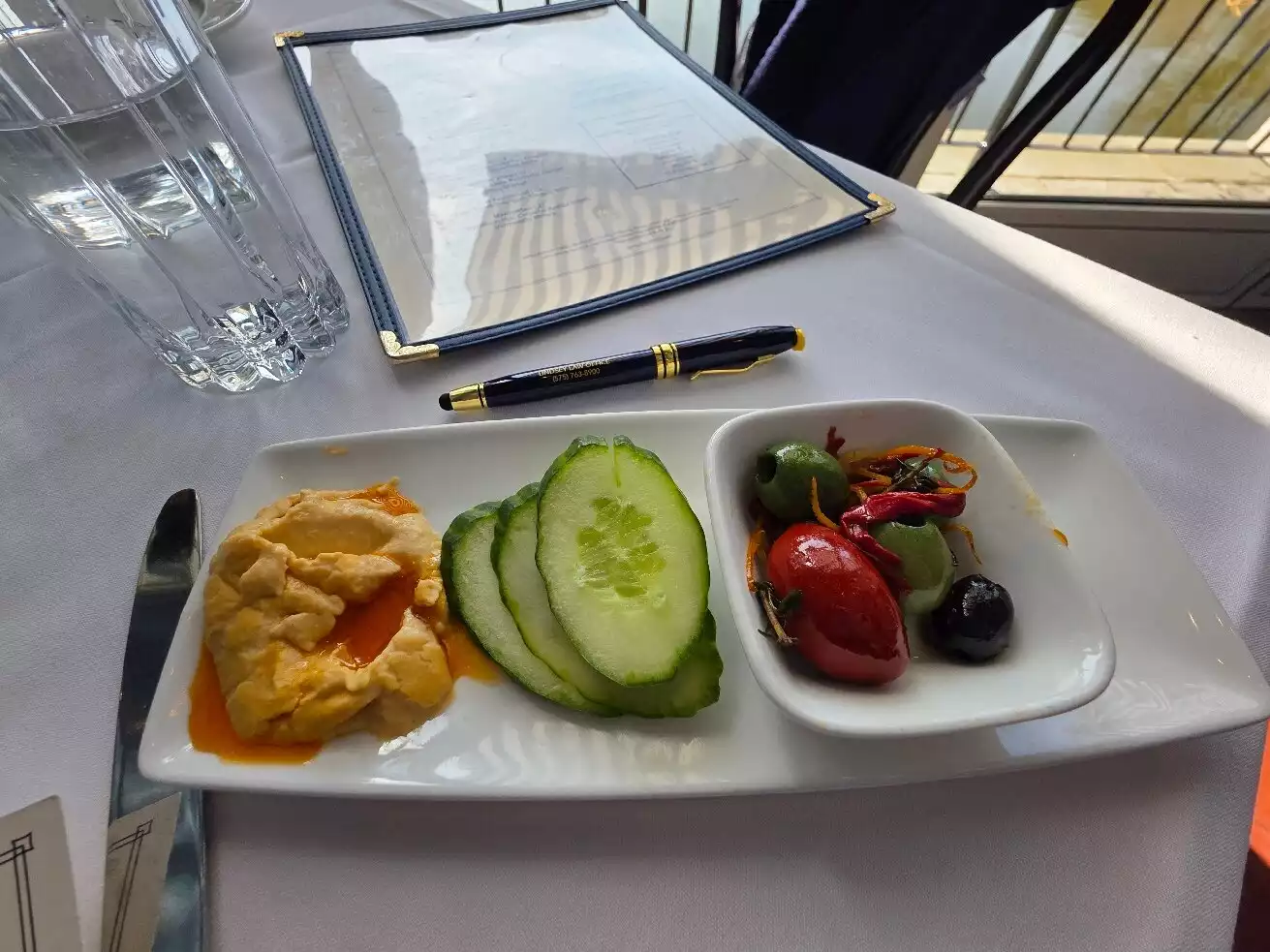 Nice location. Interesting food choices. Unfortunately no gluten free items at all in menu. Also very cold at this time of year and would be nice with some blankets.
