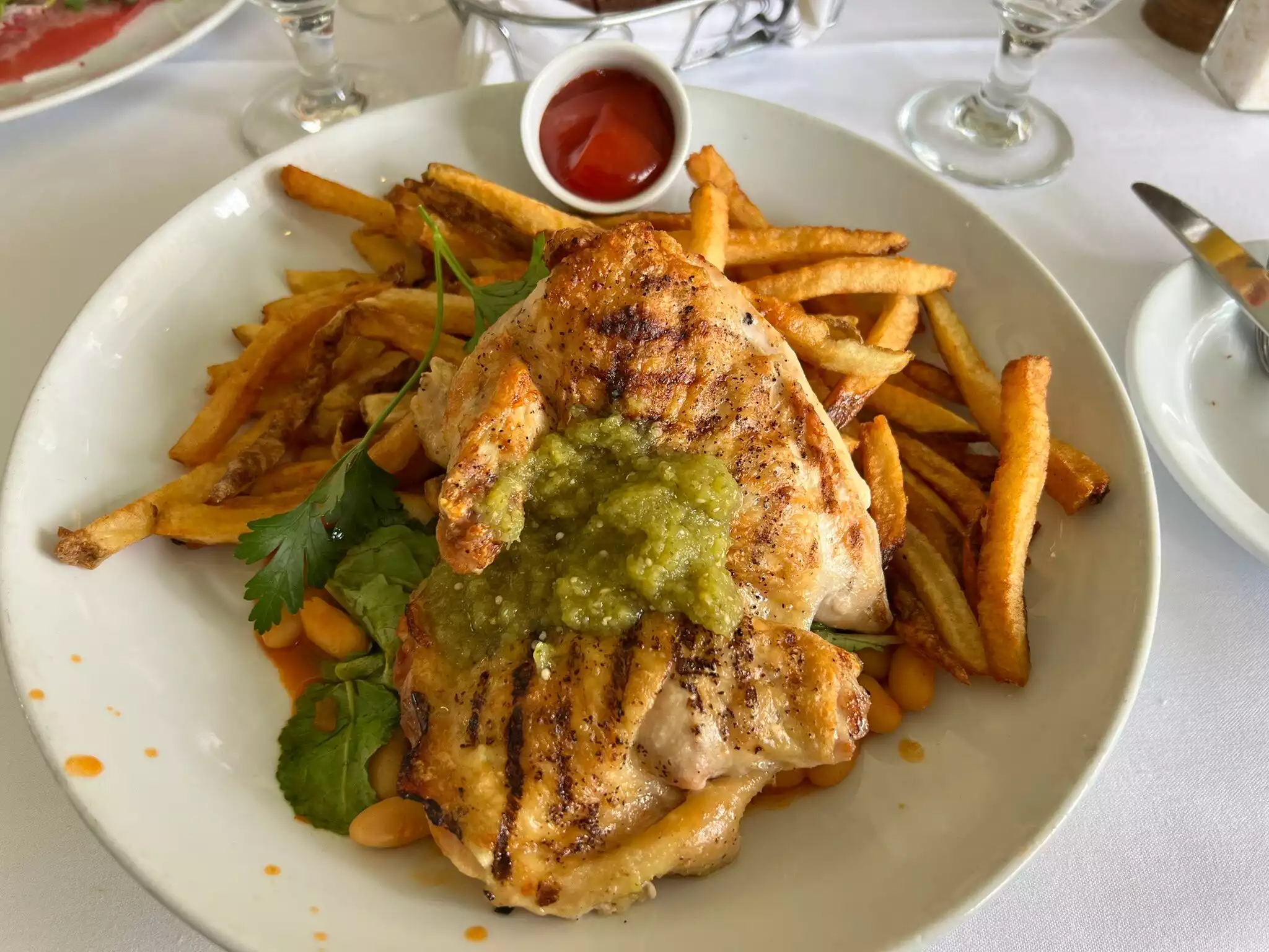 Excellent cuisine! we chose fish dishes, cooking was totally controlled and tastes exquisite. Table with white tablecloth (we appreciate) in a relaxing bucolic decor. The bill is salty, but it's NY...