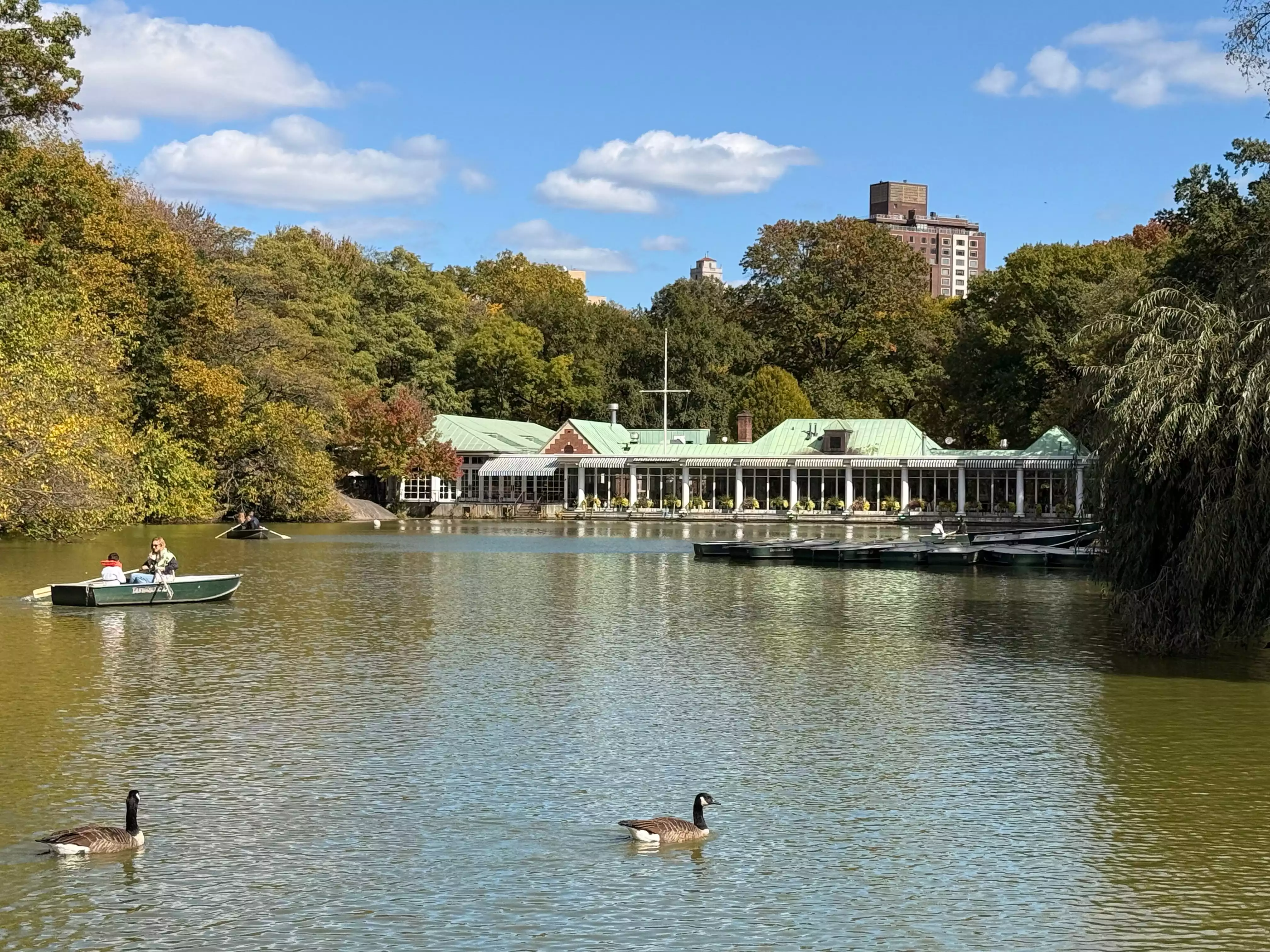 Central Park was serene on the Sunday morning we visited. The weather was perfect. The foliage and skyscrapers in the background provided a calming ambience for a nice walk We stopped here for restroom break and lunch. After placing orders at the outdoor kiosk we found a table inside, instead of the outdoor patio. There appeared to be different sections: bar lounge, more formal dining and casual order over the counter self-service. The wait for food pick up was brisk. Good quality hot chili, soup and fries, surprisingly reasonable prices for NYC and the landmark location. From our table got a good view of the rowboats in the pond. It’s an enjoyable experience.