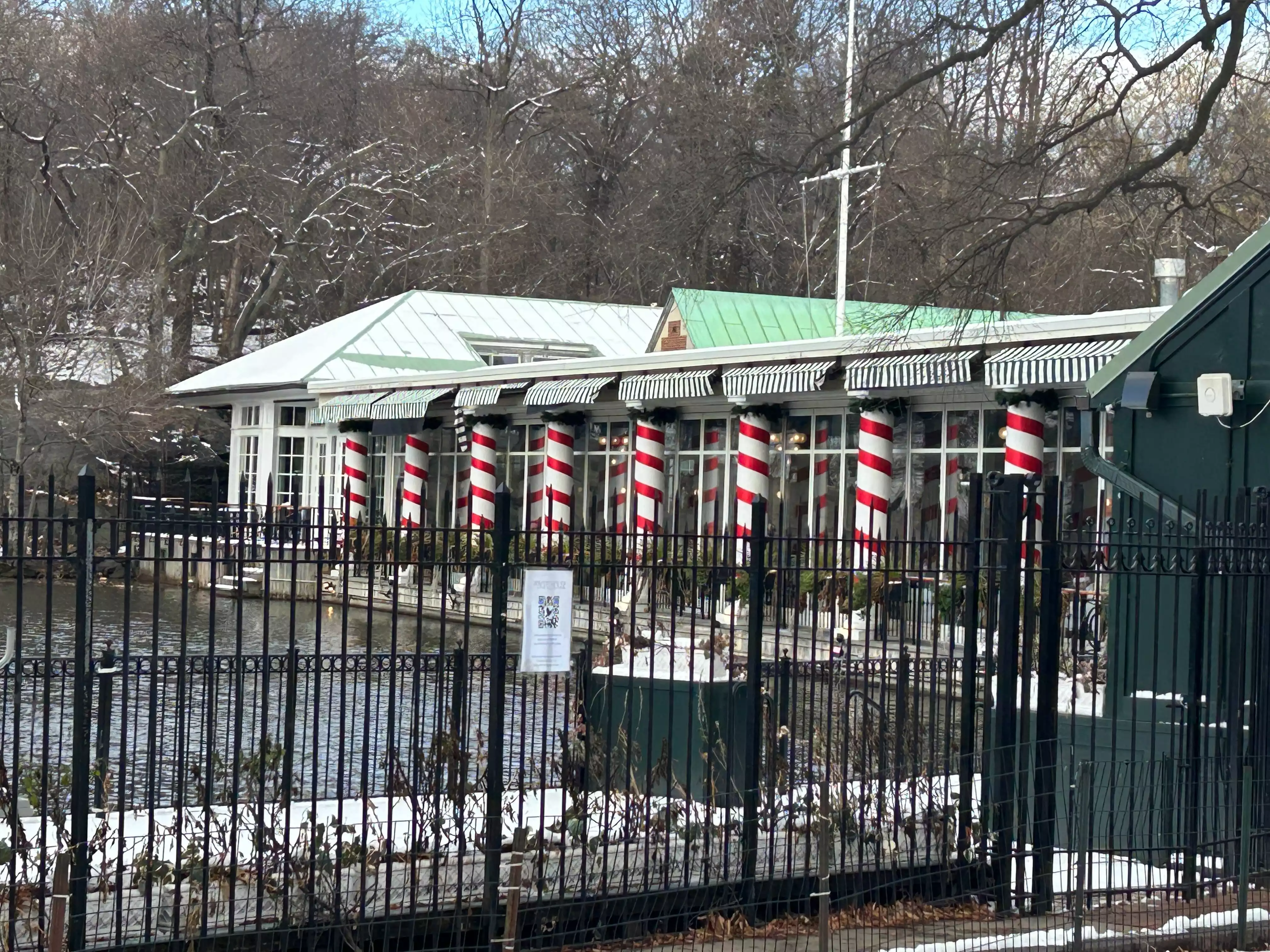 Lunch with friends a 20 minute walk through the park from the bottom of Central Park. Lovely setting, must be beautiful in the spring, summer and autumn. Friendly staff, super food. Only slight problem, bad smell emanating from the lake possibly, just spoilt it a little, but other than that, well worth a visit.