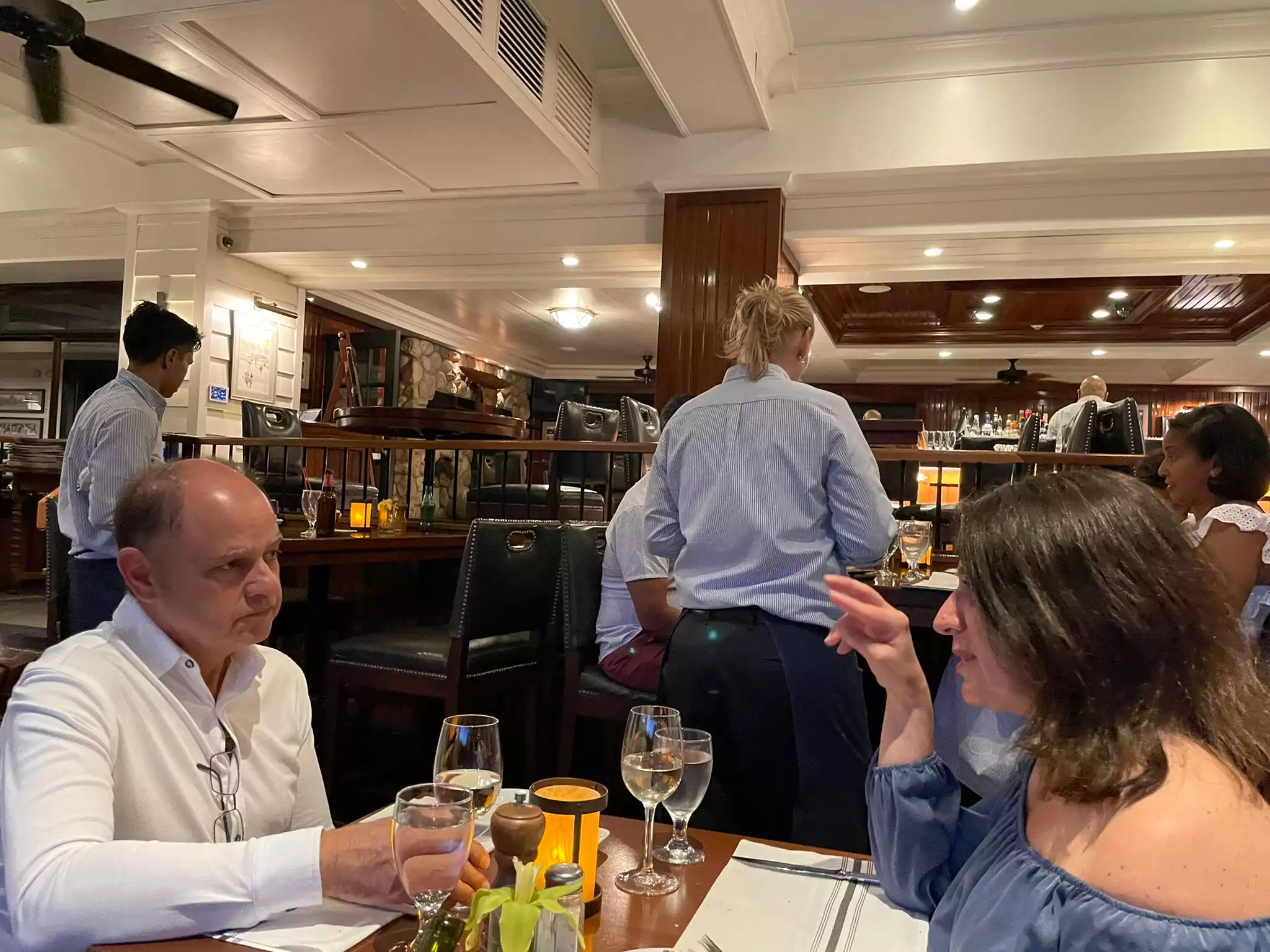 1) We had a wonderful server Galo, he was very nice, in overall, your staff is great, always makes jokes and being in a great mood! 2) Deserts are mind blowing , as well as pasta and the crab cake. Highly recommended. Appetizers size is quite a size, so don’t rush into ordering main course. 3) We were sitting right by the water, the view is stunning, so many fishies and turtles! So many people boating. Beautiful location