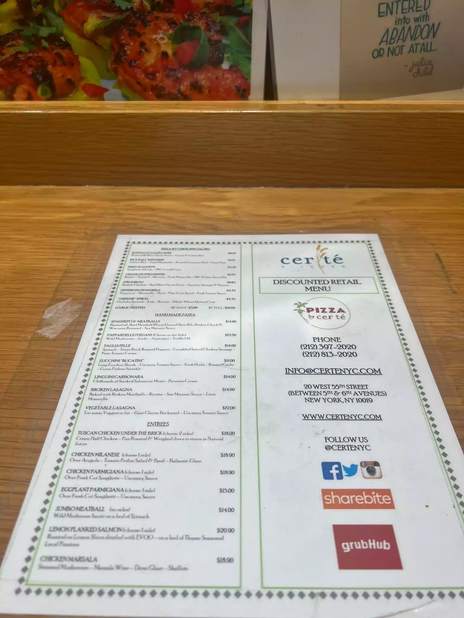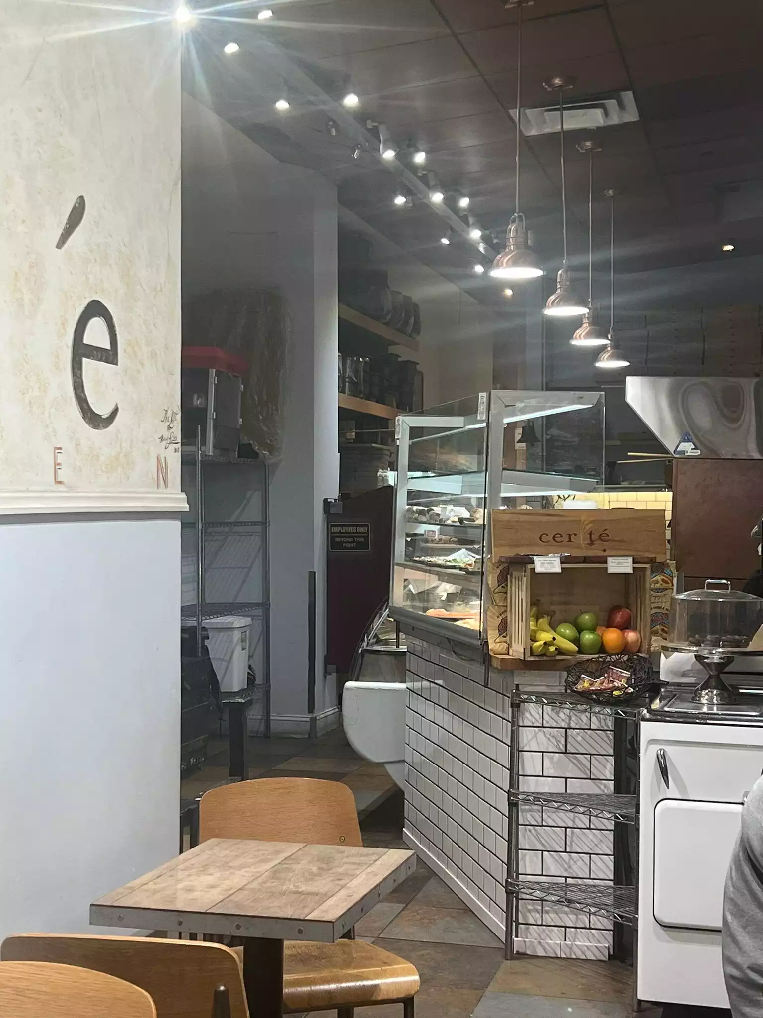 I visited Certe on 55th St in Manhattan around 5pm. I called & was told they close @ 6pm. I was shocked that the storefront was kinda dark & empty. There were no tables to sit out. The very nice counter man said, we are primarily a breakfast/lunch take out business. We do a lot of catering too. Although they were closing, he offered most hot n cold sandwiches/Soup/Salads/ Beverages. All the hot food & hot plate specials of the day were finished. I understood, but was disappointed about No place to sit. I ordered take out & ended up eating my dinner in the Sheraton Hotel Lobby. It was much too cold to eat outside. I had a great chicken breast & prosutto on a Roll, coleslaw & nice mushroom barley soup. Certe is reasonably priced for Manhattan & a very cordial counterman. He felt badly, & gave me a free snack container of Sweet n Spicy Almonds. Very nice gesture. A very good place for Take Out & Catering if you need reasonably priced-good food. I definately Will go back in the Spring & eat in the Park or Avenue Six & a Half, Outdoor Street Mall.
