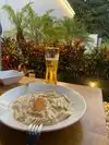 The best Pasta in Miami!!! OMG, Linguini a la carbonara, ask for the tiramisu, you will be in heaven.