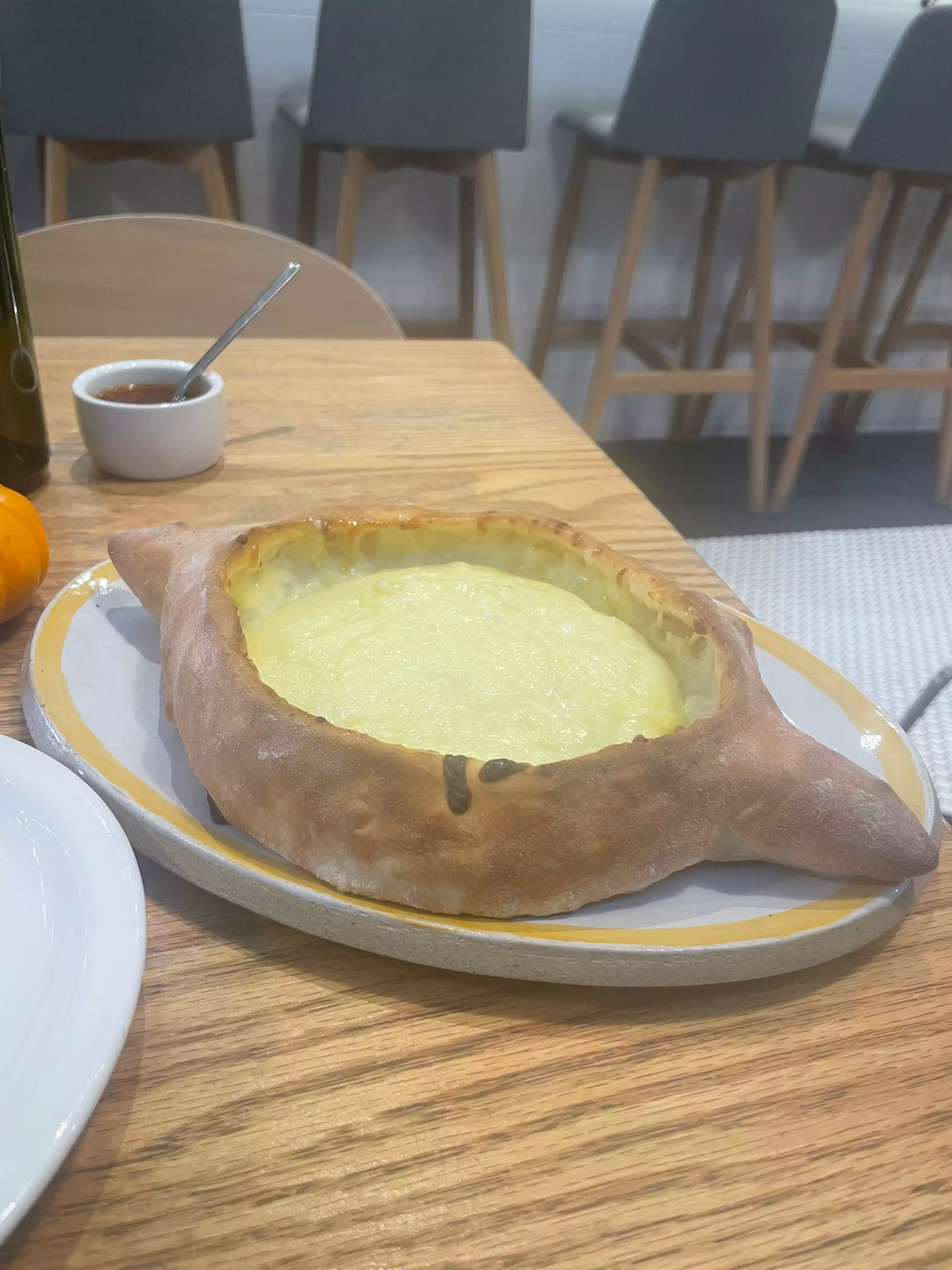 I tried the traditional Khachapuri knowing I don’t have the stomach for it. It was tasty though it didn’t agree with me. The lamb another time suited me better. The cheese especially was delicious. The service, ambience, and overall experience was good.