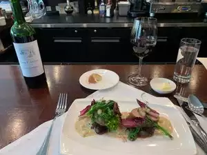 We were a bit disappointed. Other times it has been better. Starter of salmon “three ways” needed a bit more acid. The foie gras was delicious. The coq au vin was terrible. I know it has to be cooked earlier, but this was dried out and tasteless. The cod was decent, but not exceptional—just lacking a “spark.” The pork tenderloin was very good and exceptionally rich. The rack of lamb was pricey and a lacking flavor.