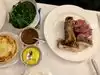 Family of 6 and a baby ,welcomed by staff and owner, enjoyed an early dinner. Many choices from special bone in rib eye for 2 to veg. Risotto, cod and cassoulet all arrived together; all very good. Stars of the dinners were risotto and rib eye; surprisingly cassoulet was good not great. Large wine list short in by the glass choices but it works well with entrees. Service very good, attentive and professional. Good choice for traditional French preparations The rib eye came with delicious au gratin potatoe and marrow.
