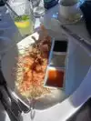 We arrived for a late lunch. The small parking lot was nearly full and the complimentary valet parking was not in operation. We were delighted with the view and decor as we waited for our reserved table to be ready. The view of the river and city is wonderful. Our server was upbeat and talkative, but took a little time to get seven waters to the table. He touted an IPA that we ordered, only to discover that it wasn't available. We enjoyed the coconut butterfly shrimp for a starter. For entrees we ordered multiples of the garden salad with shrimp, the fish and chips, and the prime rib sandwich. Surprisingly, the kitchen was out of potato fries, so sweet potato fries were substituted. The server offered fingerling potatoes or mashed. We enjoyed the entrees.