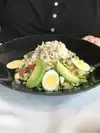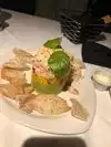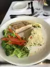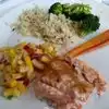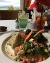 The halibut, chopped salad, and lobster bisque were excellent. The seafood and mango stack always delights. The rice was a bit bland, and the veggies a bit too al dente for me.