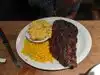 I chose this venue as we had flown from the UK the day before and then driven from Houston during this particular day and we wanted something hearty but easy to get to from our hotel and reasonably priced. It's very inviting (except the host sat at the door who yawned as we walked in) and reminds me of a Bluebeckers type restaurant back here in the UK with stone and wood walls/beams. We were served quickly and our drinks and food arrived in a reasonable amount of time.despite it being a busy Thursday night. My husband had the babyback ribs with chips and coleslaw and I had the grilled salmon with rice, chilli mac'n'cheese and sweetcorn and both of us ate every morsel and thoroughly enjoyed it! Good variety of dishes for old and young and all taste buds too.