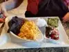 Nice service, easy access The margarita was excellent , guacamole and tortillas more than acceptable I ordered the pork carnitas with refried beans and rice. Pork was good and the steak covered with malted cheese was also scriptable buy nothing special. Desert included a chocolate cake and candles ice cream.