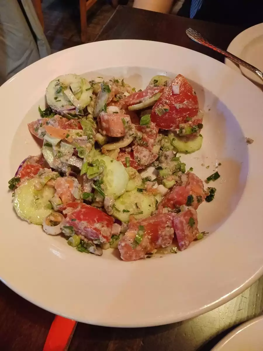 We had such a good time eating here. The proprietor went through the menu with us, described everything and helped our party of five pick out some terrific choices. We started out with the Kartvelian Salad (tomatoes, cucumbers, onions, seasoned to perfection), then moved on to the Lobio (a delicious stew of kidney beans, herbs and spices) then Khinkali dumplings, the vegetarian option with cheese and spinach, a sight to behold, then finally 2 cheeseboats, the gouda and the traditional. Yes, it really is a bread boat full of melted cheese, and it's delicious. All accompanied by Georgian wine and beer. All highly recommended. Such great friendly service and atmosphere. Hope to be back soon.