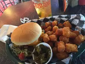 The burgers are to die for....pure beef hamburger patties , hand made and grilled for the medium rare pallet. The Cheddar has real Cheddar melted on, while the Swiss, Mushroom has it's own great flavor...they are thick and juicy. Tator Tots are offered with all burgers. Milk shakes are thick and flavorful. Kids love it!!! A multi-generational hangout for great Family Meals, the Ol' Fashion Way!!!