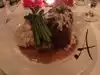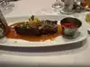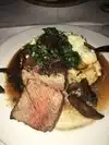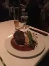 Upon arrival was asked if I had a reservation. I did not, place was almost empty and was seated. Young very serious woman who presented herself as our server requested that we move since we had taken a third chair to put our bags. She gave us another table with a shelf so that we could put our bags. Was not very impressed with the menu and the appetizer was disappointing. Expensive but disappointed. Restaurant is in a strip mall and inside is rather dark. Decor is nice but a But on the dark side. Main course was a very very tender beef filet with mashed potatoes. Very filling and large course. Wanted desert but portions seemed to be huge. It was ok but nothing to rave over.