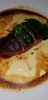 The food and drinks were very good, that is, excellent, but the service of the waitress was terrible, she was never there. On 3 occasions I stopped at the bar to look for drinks because she did not appear, the soups for the starters never arrived, the food arrived in parts at about first and others after a while, that is, I would never return, what a shame I recommend to the chef oh owner to be more careful when selecting the waiters my opinion oh experience was terrible on her part I hope it doesn't happen to others