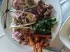 First of all it’s too loud inside. The wine list is not varied enough and the prices are quadruple what they should be as they also are in the menu. The sampler was over cooked and had to send back. The salmon had zero flavor Osso bucco was the better choice. Plates are shareable Will not be back. Totally over rated.