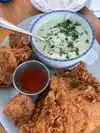 Large portions (too large) of fried, fried, fried. And carbs. If both portions and prices were 40% less I would have been happier. But it was a table large enough for our party of seven and a happy ambiance that facilitated a great visit. And that was what we really wanted - a good visit. Dinner was secondary. Still the price was high and service only so-so. Eat here if you want a mega-portion of fried whatever.