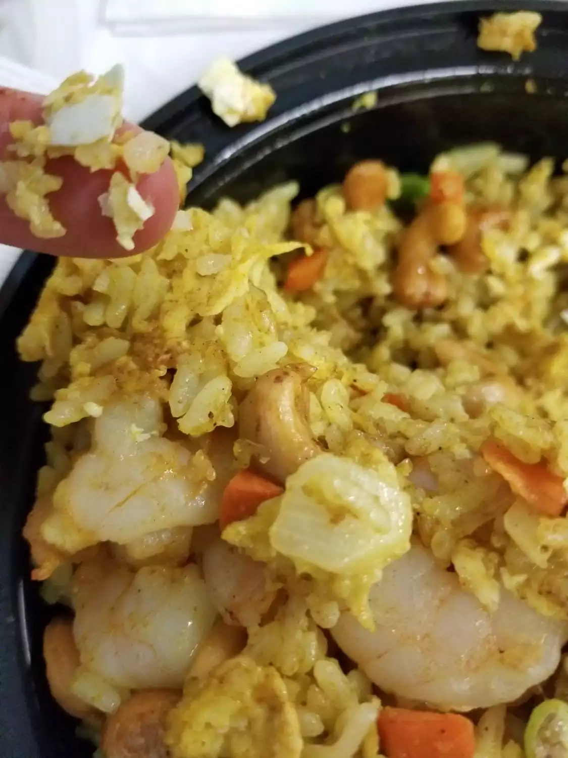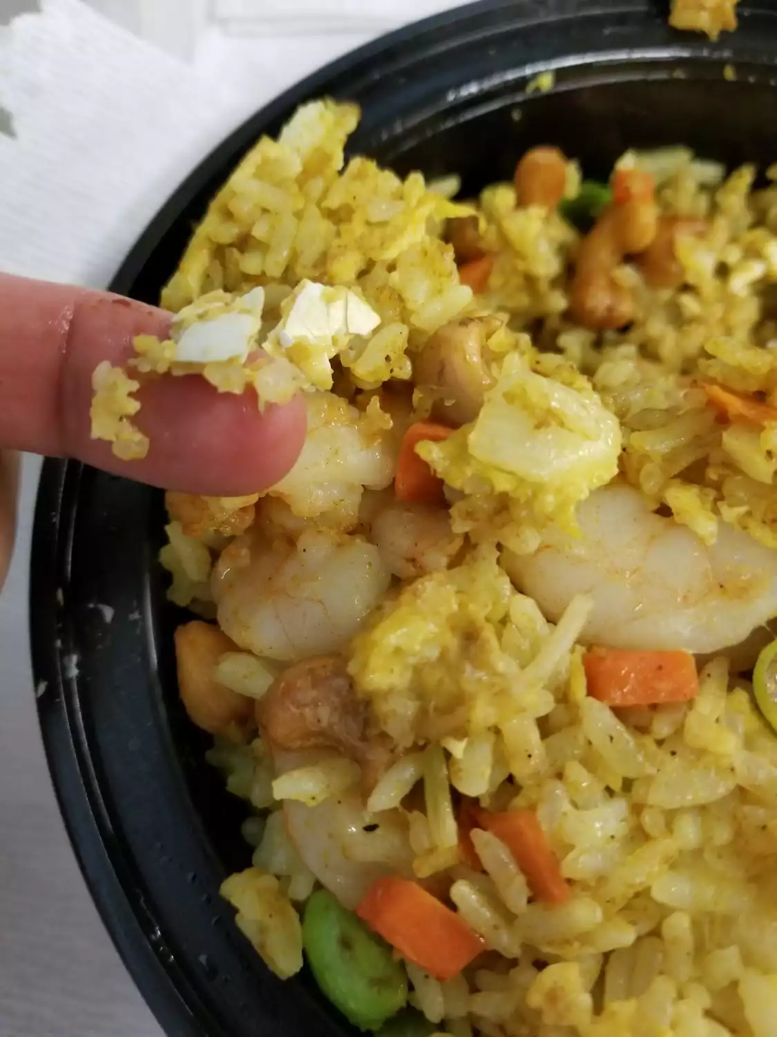 Recently I placed a order to pick up ( Shrimp Pineapple Fried Rice and Barbecue Ribs ), when I called the lady took my order, so, when I was about to order for the Ribs she hung up on me; I called back again and mentioned to the lady that she didn't let me finish, she gave me a kind of attitude like "Ok..go"...so, I picked my order, when I opened, the rice was too greasy, full of curry, when I was eating it, I felt something in my mouth, I thought it was the cashew, but it was kind of crunch, when i spitted out, it was egg shell...Freak!!!...the more I was chewing the more I was feeling the egg shell in my mouth,I checked the rice and there were egg shell all over, I was so mad that I had finished throwing my lunch...Will come back, nahhhh....I pass....