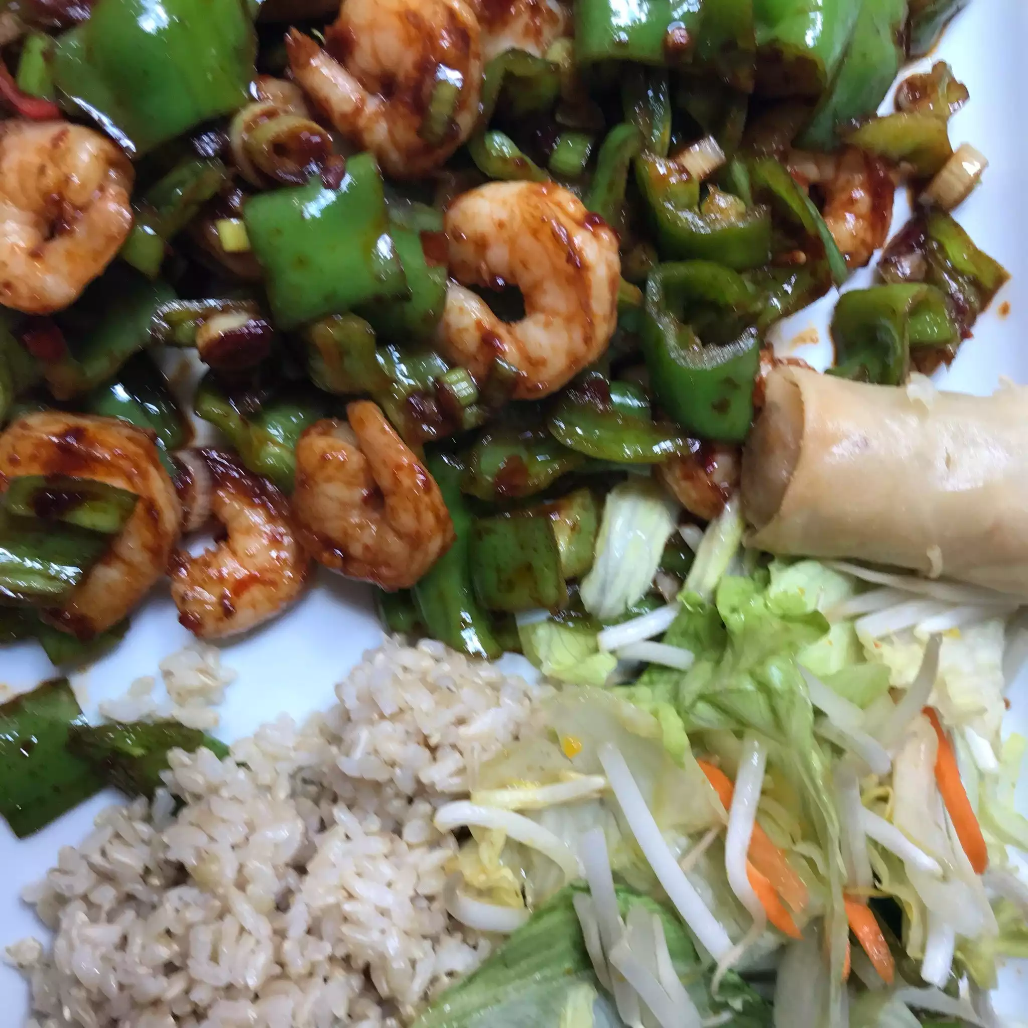 While the people might have a bit of a problem with English, they correct things if errors are made. My husband enjoyed the spicy chicken and shrimp Kungpao and I liked the spicy baby shrimp. I had no idea it would have so much jalapeño but it was tasty!