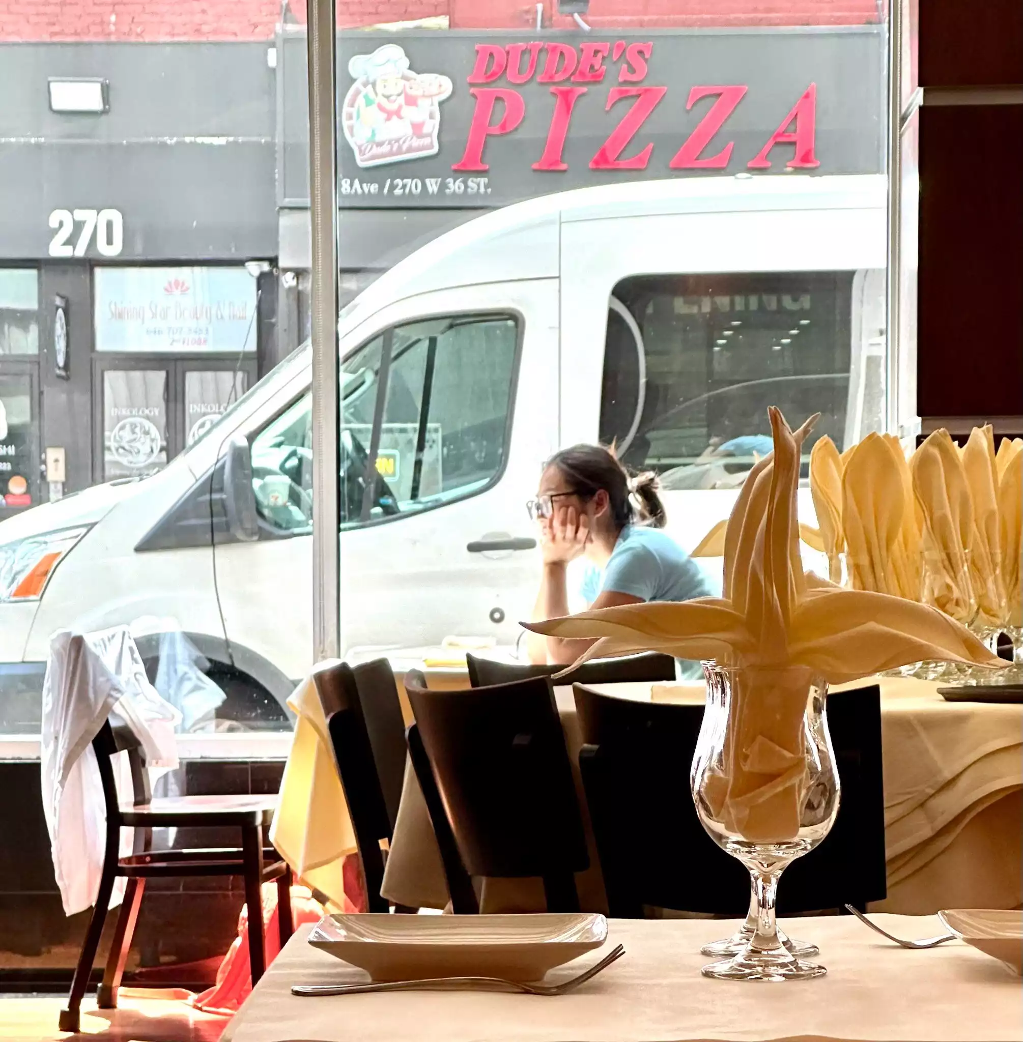 Hot summer day. Was looking for a lunch place between Penn Station and Port Authority. This restaurant was cool, attractive, good food, felt comfortable solo. Bargain. Hidden gem. Great price. Beef lo mein.