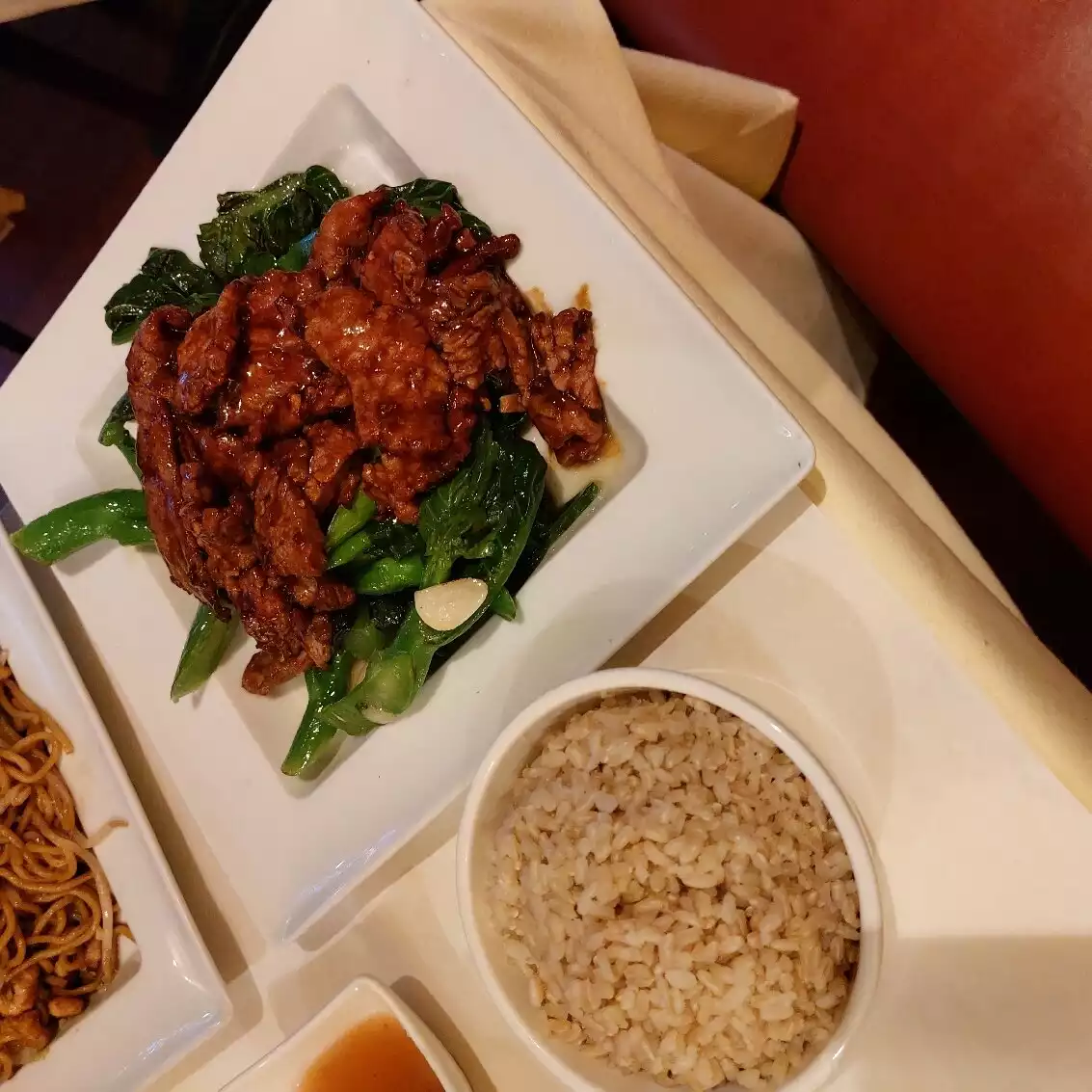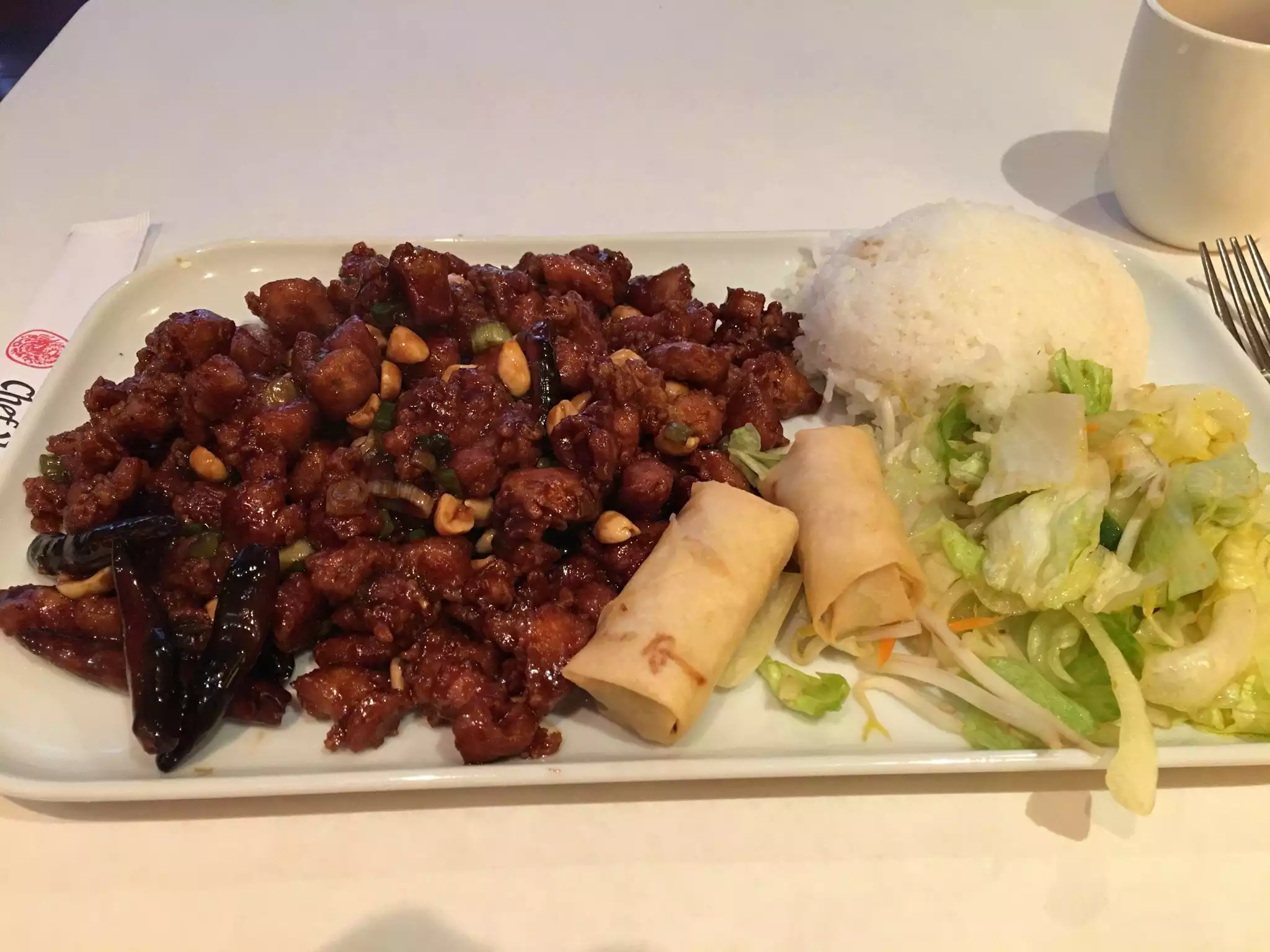 Three of us for early dinner. Prompt service, good food. They were almost in a hurry it seemed. Still, reasonable price for good Chinese. We are non spicy for the Grandchild that was along. Chicken w cashews was excellent. Broccoli w pork was undercooked to our tastes. Would go again. Chinese w tablecloths!