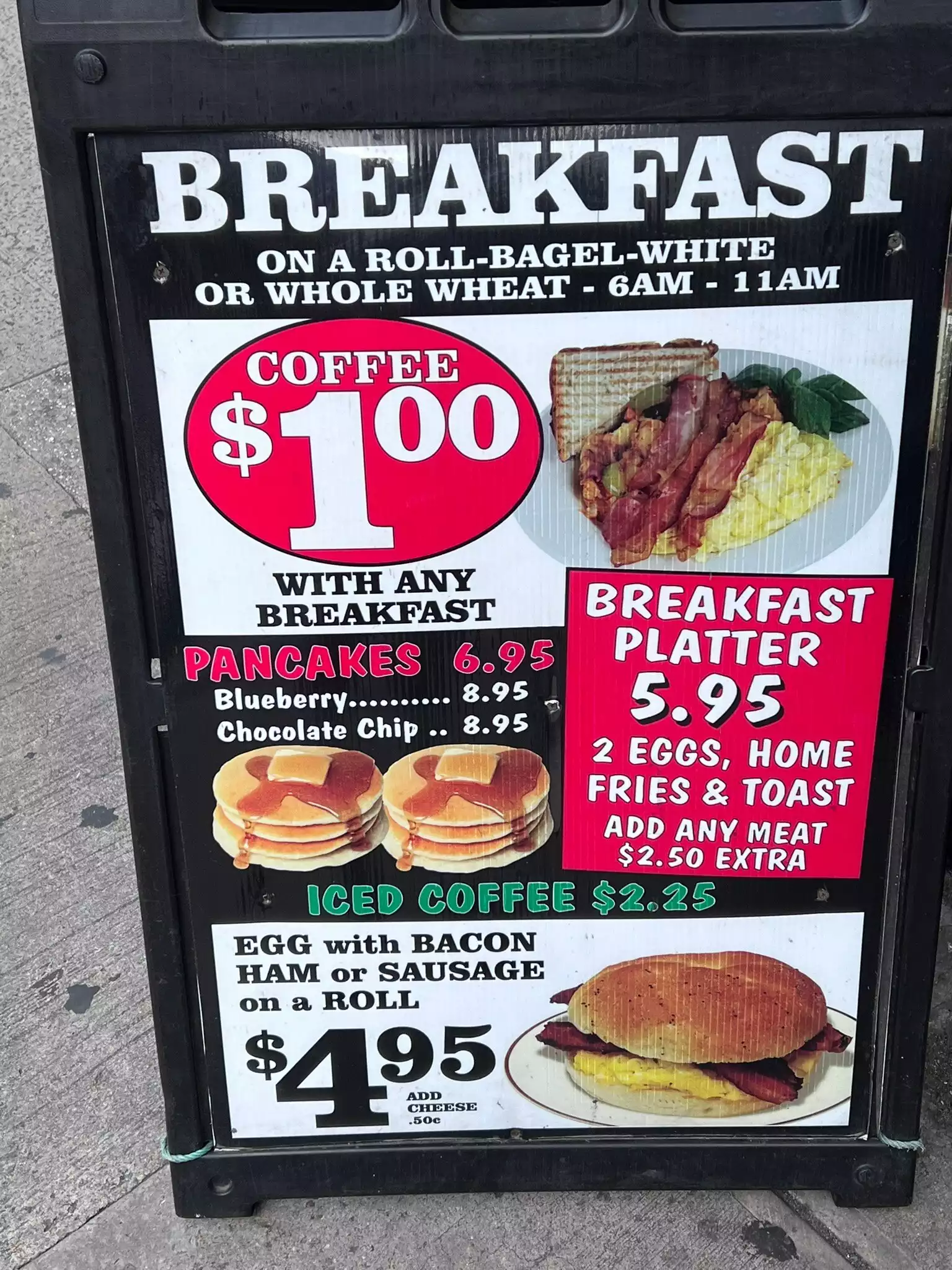 We lived around the corner and came every day for breakfast - 2x pancakes, bagels, toast with eggs and coffee for 26 dollars. A little chat with the boss or his employees - next to it a very friendly tobacconist to buy a NY Times and that Subway. The Papaya is probably a little insider tip - you can find pretty much every shift there. Just going in and spending a while there is great fun - great snack bar!