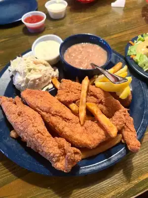 The catfish is amazing and the portions are large. Fried pickles are great and other items on the menu are great as well. Great family place.