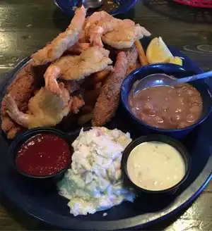Started out with their fried green tomatoes which are super. also ordered the corn nuggets which were not that good. The seafood gumbo was good but a bit dry and not very much of it for the price. The seafood feast and the Cherry Creek Trio are both winners on the menu. Fast service and friendly servers make for a nice meal. The fried oysters on the seafood feast were a bit old tasting but the catfish was awesome.
