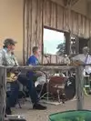 My first visit. The people were very nice and took good care of us. Ordered Fried Okra for appetizer. It was excellent and very hot. Had to cut it into pieces to eat the first part. The salads were nice and crisp, the tomatoes ripe. We were seated at the last open table. Appetizer arrived quickly followed by salads and shortly by our plates of food. One plate was oysters, the other shrimp, oysters, and ribs. The oysters were crisp, a hair past perfect for my taste. French Fries perfect. A bowl of pinto beans were cold, but they fixed that right away. There were lots of families and kids. Music outside and a couple of picnic tables. The chocolate pie for desert was top notch. It was very firm, pecan crust, white topping with chocolate sprinkles.