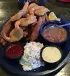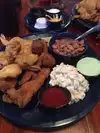 Appetizer Green tomatoes were obviously refrozen pucks. The mixed seafood basket was very mediocre. Don’t go here Bathroom was DIRTY, I told employee. She sneered at me. Salt shaker was grimmy