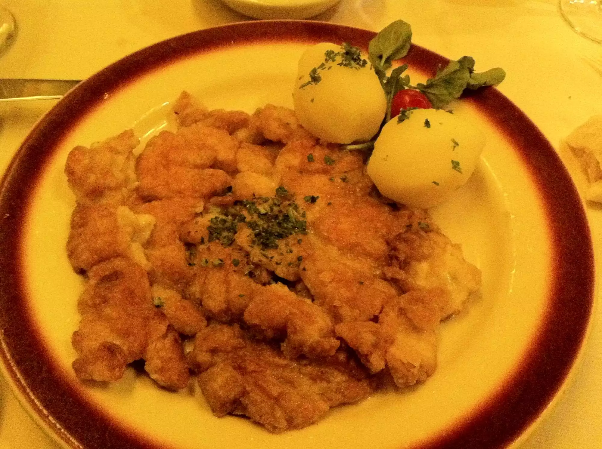 This was my second time visiting this charming restaurant. I got a weekday evening meal without booking, but the place was quite full; i think mostly locals. The serving staff are so charming, the place so atmospheric. My first visit i had veal kidneys, this time i had the special: pan fried trout. A disappointment. The fish was tasteless and grainy, the potatoes equally tasteless, like the pre-peeled ones that come in a big bag. A few green beans-an excuse for veggies. My partner had prawns- they were delicious. We tried to oder a souffle, but at 9 pm it was too late to order; it takes one hour to prepare-another disappointment. Remember; the souffle is outstanding- order immediately when you come in