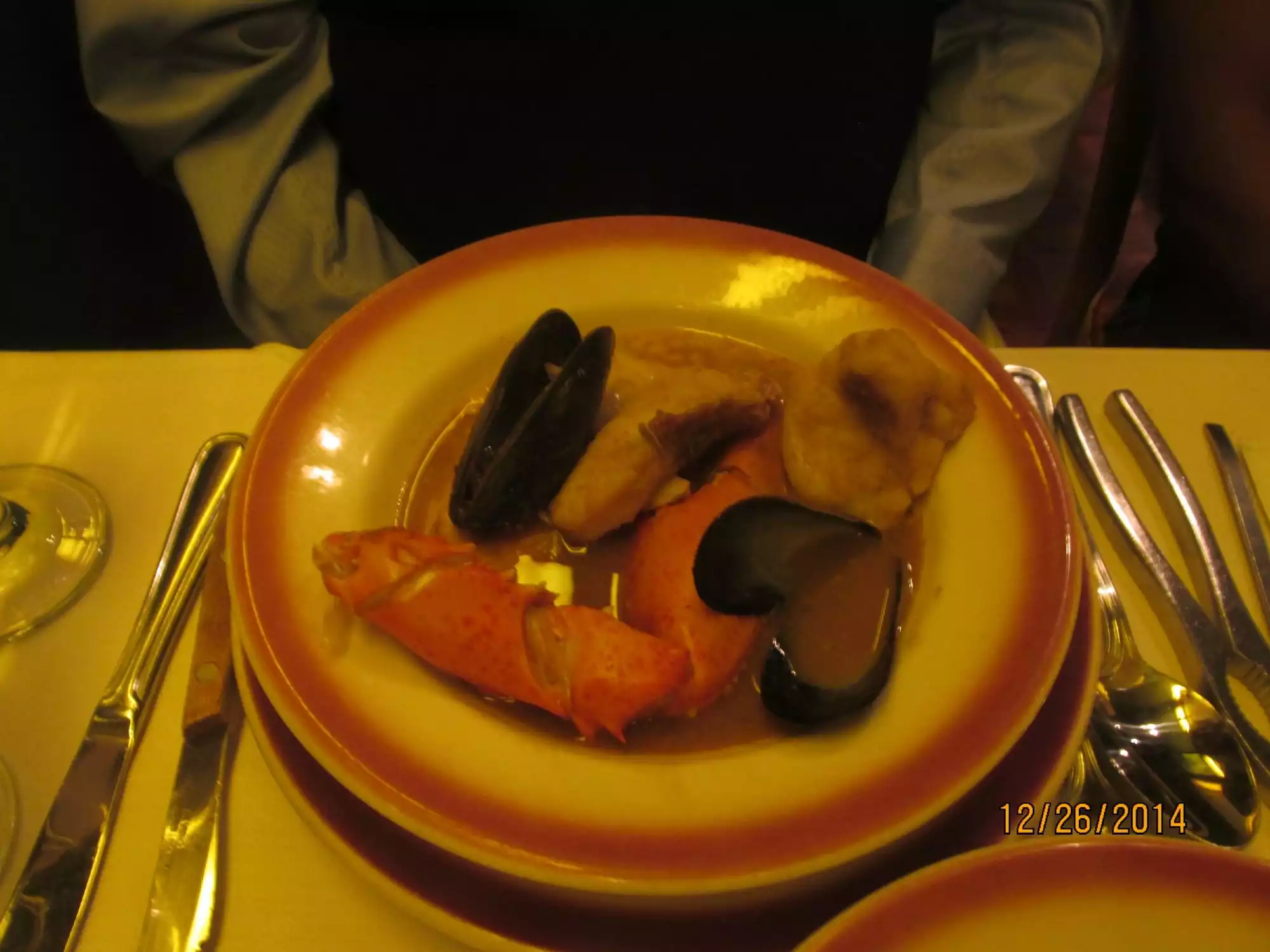 Very disappointing. My friend lives in NY and this is a favorite. I don’t have any idea why. We ordered Bouilliabase ($70 to share). We each got two mussels, one 2” square of mystery fish. My friend got the half lobster and I got one claw. If you are offering it “for two,” you should find a way to give each person a decent portion of the lobster. And while they were closed couldn’t they have painted the dreary walls? And the decor is partially framed jigsaw puzzles? Won’t bother with this place again.