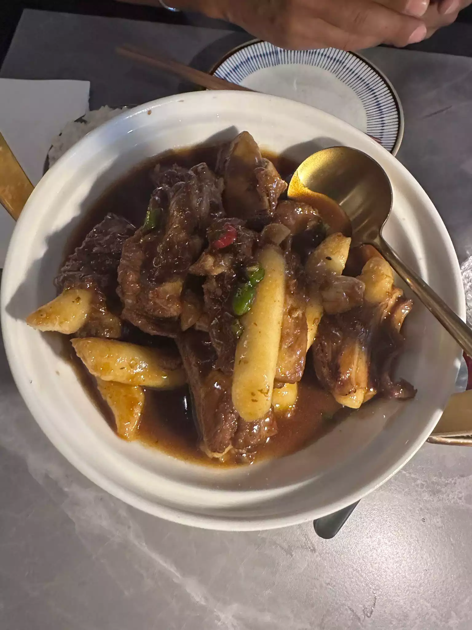 Very nice staff and also the food really very good and well presented. We had spicy dishes and pork currants with the inside eyes of super good rice also vegetables.