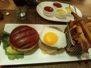 The yummiest breakfast grub after that festive night out. A perfectly cooked burger topped with an egg over easy, and don't forget the street fair style fries. All that with a chilly Two Hearted IPA, is another best beginning to a sunny Chicago day!