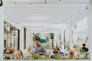 The atmosphere here is cozy yet light and the main dining area has a very airy and southern feel to it. I prefer to sit in the bar to eat at night and the main dining area during the day. The Q3 is my favorite and provides enough variety to satiate my BBQ craving! I also love the side of beans and the hushpuppies are delicious! The pickles and BBQ chips to start are SO GOOD, but very addicting and could fill you up before your meal if you're not careful. In the summer, the outdoor patio is so cute and comfortable with big white umbrellas and padded seating and lots of pillows.