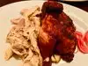Was pretty good. My brother and I shared a combo platter of various meats. Baby back Ribs and pulled pork were quite good. Chicken was fine. Brisket was so so. A little dry. Hot link was dry and neither of us had more that two bites of it as there was plenty of other good food on the tables. If I went back I’d just go w pulled pork sandwich. Their eastern N.C. style vinegar based sauce was very good on the pork. Had a bourbon cocktail that was ordinary.