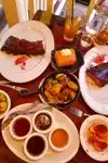 We picked Chicago Q because of the set traditional turkey and trimmings Thanksgiving meal. Being for overseas we wanted to experience a traditional meal. We were disappointed. The turkey was so melt in your melt and delicious, and usually I don't get excited by turkey. The Brussel Sprouts which I usually don't eat were very tasty. Everything was a bit sweet, but I figure that would be traditional for Americans. I really enjoyed my whole meal. It was finished odd with of course Pumpkin pie which was nice. The meal was huge and filled me up. The service was a bit over attentive and kept trying to take my plate away before I was done. However for $41 I thought it was good. They perhaps could include a glass of wine or champagne for that price with it.