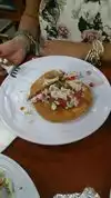 Wonderful Yucatán dining in a spacious pavilion. My wife and I split everything. The Tostada de Ceviche $6.99 was loaded fresh fish. The Pibil marinated pork with pickled onions served with tortillas, rice and black beans $12.99 was wonderful and the Tacos De Pescado (order Of 2) for $6.99 was enjoyable. For desert we had the Platano Con Crema $3.99 that were perfect.