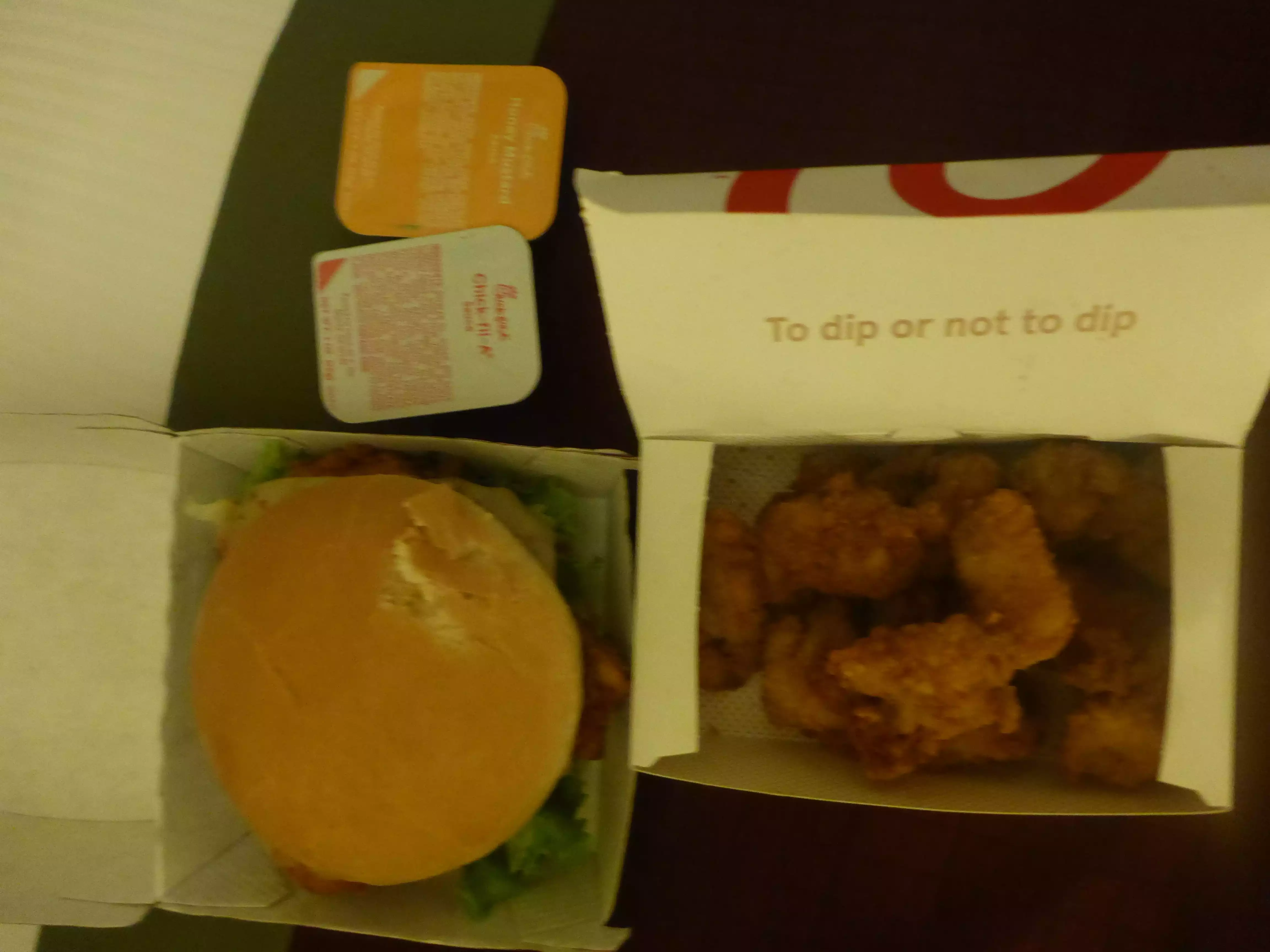 Excellent food even late at night when we went. You can really taste the difference. The chick-fil-A sauce is amazing too! So much better than KFC.