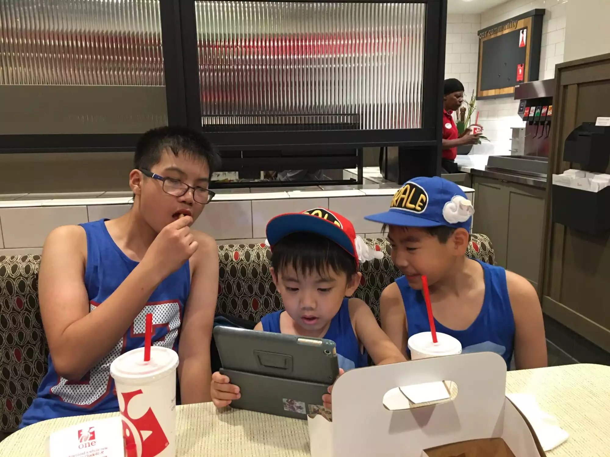 This location is like all chick's clean- fast & the food is what you would expect. This one is well organized to handle the crowds. setting is limited.