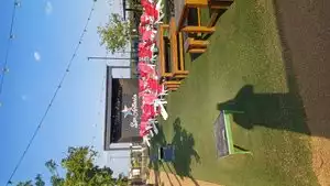 This place is great! Visited with my family for lunch on a Saturday. Tried to play pickle ball but all the courts were reserved until 11pm. Book in advance! Food and service was good. My kids enjoys playing bocce ball and battleship but really wanted to play pickle ball.