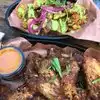 Wings were great and a good value. The two sauces were very unique and kicked my butt with spice. The guns, which are the potatoes, were very tasty as well. They put a green sauce with it that looks gross to me but to my surprise ended up tasting great!