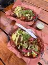 Wanted to visit a food truck so asked a local. Recommended Chicken and Guns. Highly recommended. Roast Chicken in a Chimchurri sauce. was amazing. Get the salad vs. potatoes, it's a good combo with the chicken and is fresh and amazing. There is a covered seating area at the 12th/Hawethorne truck court, so rain isn't a problem. Beer/Wine is available from potato truck vendor.