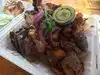 Small cart pod, Cartopia, EZ parking. Lots of tables, tables have fire pit in the center of them, and in Portland Oregon you need them about 70% of the time. The owner has taken my order every time I've been there, and he is down to earth funny and a bit quirky. The barbecue over the oakwood gives the chicken a flavor that's unbelievable, and the spices he uses compliment the barbecuing. The guns / potatoes his version of french fries are cubed and brown crispy and unbelievably delicious. They come with pickled onion and it's a great compliment to the dish. The two sauces are what really keep me coming back to this establishment. The aji is Peruvian and contains several ingredients that just blend perfectly. The chimichurri sauce, of Argentine origin is absolutely mixed to perfection and brings out the flavor of both the chicken and the potatoes in a great way I always order one extra of each as well as one extra of the pickled vegetables. I'd like to have some fancy explanation of why I like this restaurant so much but the bottom line is the flavors just burst my taste buds so much so that if I have a meal there on Tuesday I'll take the extras home for Wednesday and by Friday I want to have it again and to me that's the biggest compliment you can give a food source What surprises me is very few portlanders have tried this food truck I asked them all the time and I'd say nine out of 10 people have never tried it, and I tease them and tell them they're crazy and that the tourists haven't beat by a long shot and when they go and try it they'll pick up the phone call me and thank me cuz they too will have found one of the best meals and all of Portland and that's a mighty tall order