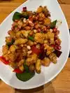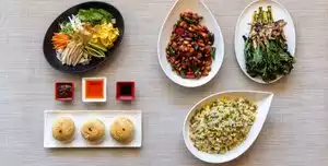 Positives were the Peking Duck sesame “pockets” - small buns stuffed with the duck, vegetables and spices - and the “Working Hands” dumplings with impossible meat. Very flavorful. Waitress should have advised us that the Peking Duck would be room temperature - or was that not the way it was supposed to be? Negatives included the very bland Kung Pao “firecracker” chicken - no fire at all! One person in our party had mentioned that she couldn’t eat bell peppers. She didn’t order the dish, but the bell peppers were delivered uncooked on the side, and apparently no hot peppers were included in the cooking of the dish. Finally, we had discussed whether the “Chow Mein” dish could be prepared without the pork. We ultimately decided to order something else, but apparently the waitress got confused and sent us this dish without the pork. What the dish consisted of was lots of Lo Mein noodles with a sparse amount of chicken, shrimp and vegetables. And the flavor overall reminded me of canned Chop Suey. Fortunately, each table has a jar of chili bean sauce to add to the food. But I would have preferred that was not necessary.