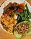 Decided to go to this restaurant as it was highly rated on Tripadvisor We arrived, it was busyish and were warmly greeted. It took a few moments to be seated. The decor was nice. Our waitress came and took our food order together with our drink order. I had ordered a rice dish, and my partner had ordered a curry. This was our first time here, and our server did not explain the menu to us. Within minutes my rice dish arrived. Before our drinks, which were about 10 minutes after. The couple seated behind us complained because they had arrived before us and other guests and had not been seen too. My partner told me to start as rice goes cold quickly. Approximately 15 minutes after the drinks, so 25 minutes into my meal we had to ask where my partner’s dish was. All the while other servers were talking to customers and explaining how the menu worked Eventually when the meal arrived it was nice, and flavoursome, but the taste had been tarnished by the whole experience. Personally, I would not come back