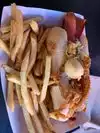 We had order of fish and chips, crab sandwich, hot dog and clam chowder. Crab sandwich was good. No pieces of shell, not overly mayo and fresh bread. Chowder was hit and seasoned well. Hit dog was actually really good. Great relish. Fresh. We ordered the fish and chips to compare with the close by CodMother. We liked CodMother better due to the crispy batter. It was a little thicker there. But this was good. Very good. Nice clean seating in the sunshine or shade too.