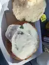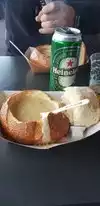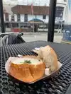 Great Clam Chowder in a sourdough roll. Hubby and I shared that and a serve of calamari and fries for lunch. Half of the restaurant is table service and the other half seating for takeaway. Reasonable price and tasty food. Quick service.